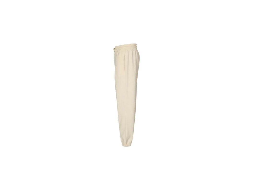 bez etikety - připraveno na rebranding, volnější střih nohavic, neutrální velikostní štítek , pasový límec s pruženkou, na stažení šňůrkou, lištové kapsy v bočních švech, dolní lem stažený pruženkou, vnitřní strana počesaná
